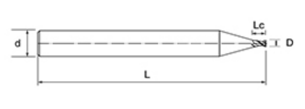 | ชุดเครื่องมือ | เส้นผ่านศูนย์กลาง | รัศมี | รัศมีมุม | ความยาวขลุ่ย | ความยาวที่มีประสิทธิภาพ | ความยาวโดยรวม | ก้าน ดีia | |||