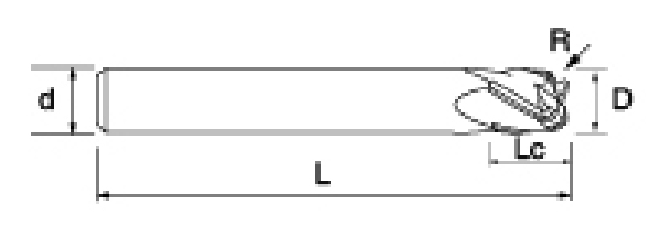 | ชุดเครื่องมือ | เส้นผ่านศูนย์กลาง | รัศมี | รัศมีมุม | ความยาวขลุ่ย | ความยาวที่มีประสิทธิภาพ | ความยาวโดยรวม | ก้าน ดีia | |||