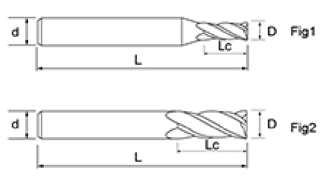 | ไม่ | เส้นผ่านศูนย์กลาง ดี | ความยาวขลุ่ย ลค | ความยาวโดยรวม ล | ก้าน Dia ง | จำนวนใบมีด เอฟ |