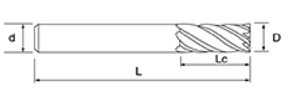 | ไม่ | เส้นผ่านศูนย์กลาง ดี | ความยาวขลุ่ย ลค | ความยาวโดยรวม ล | ก้าน Dia ง | จำนวนใบมีด เอฟ |