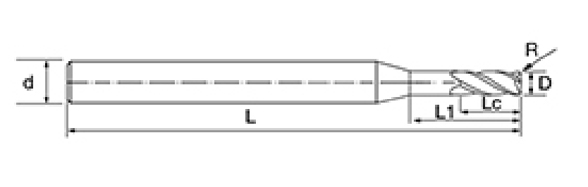 | ไม่ | เส้นผ่านศูนย์กลาง ดี | อาร์ แองเกิล ร | ความยาวขลุ่ย ลค | ความยาวที่มีประสิทธิภาพ ล1 | ความยาวโดยรวม L | ก้าน Dia ง | จำนวนใบมีด เอฟ |