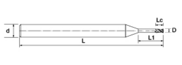 | ไม่ | เส้นผ่านศูนย์กลาง ดี | ความยาวขลุ่ย ลค | ความยาวที่มีประสิทธิภาพ ล1 | ความยาวโดยรวม L | ก้าน Dia ง | จำนวนใบมีด เอฟ |
