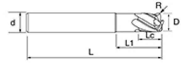 | ไม่ | เส้นผ่านศูนย์กลาง ดี | อาร์ แองเกิล ร | ความยาวขลุ่ย ลค | ความยาวที่มีประสิทธิภาพ ล1 | ความยาวโดยรวม L | ก้าน Dia ง | จำนวนใบมีด เอฟ |