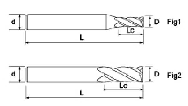 | ไม่ | เส้นผ่านศูนย์กลาง ดี | ความยาวขลุ่ย ลค | ความยาวโดยรวม ล | ก้าน Dia ง | จำนวนใบมีด เอฟ |