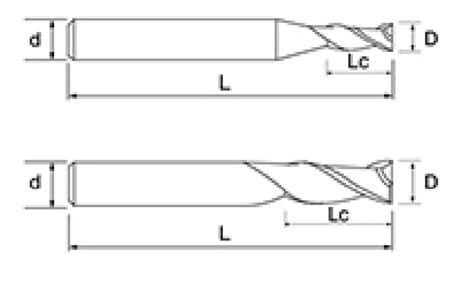 | ไม่ | เส้นผ่านศูนย์กลาง ดี | ความยาวขลุ่ย ลค | ความยาวโดยรวม ล | ก้าน Dia ง | จำนวนใบมีด เอฟ |