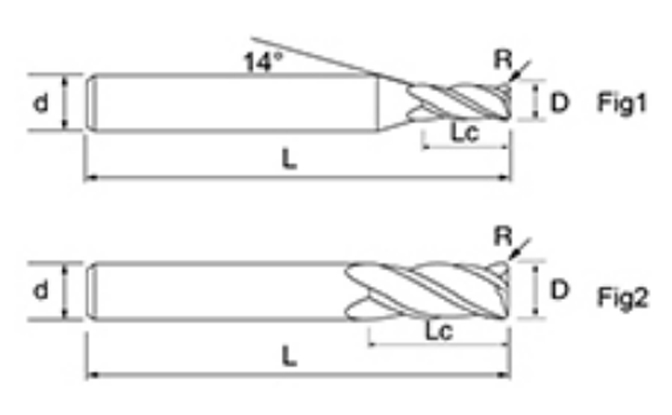 | ไม่ | เส้นผ่านศูนย์กลาง ดี | อาร์ แองเกิล ร | ความยาวขลุ่ย ลค | ความยาวโดยรวม ล | ก้าน Dia ง | จำนวนใบมีด เอฟ |
