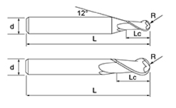 | ไม่ | เส้นผ่านศูนย์กลาง ดี | อาร์ แองเกิล ร | ความยาวขลุ่ย ลค | ความยาวโดยรวม ล | ก้าน Dia ง | จำนวนใบมีด เอฟ |