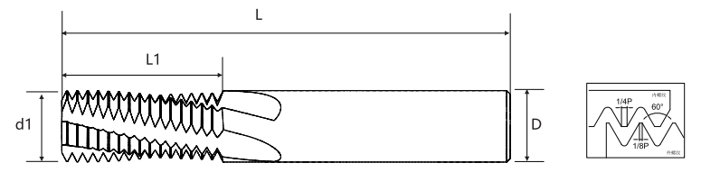 | สนาม | ฟันหยาบ ยูเอ็นซี | ฟันสวย UNF | ฟันละเอียดเป็นพิเศษ ยูอีเอฟ | เส้นผ่านศูนย์กลางใบมีด ง1 | ความยาวใบมีดที่มีประสิทธิภาพ ล1 | เส้นผ่านศูนย์กลางด้ามจับ ดี | ความยาวโดยรวม L | จำนวนใบมีด | เส้นผ่านศูนย์กลางรูด้านล่าง |